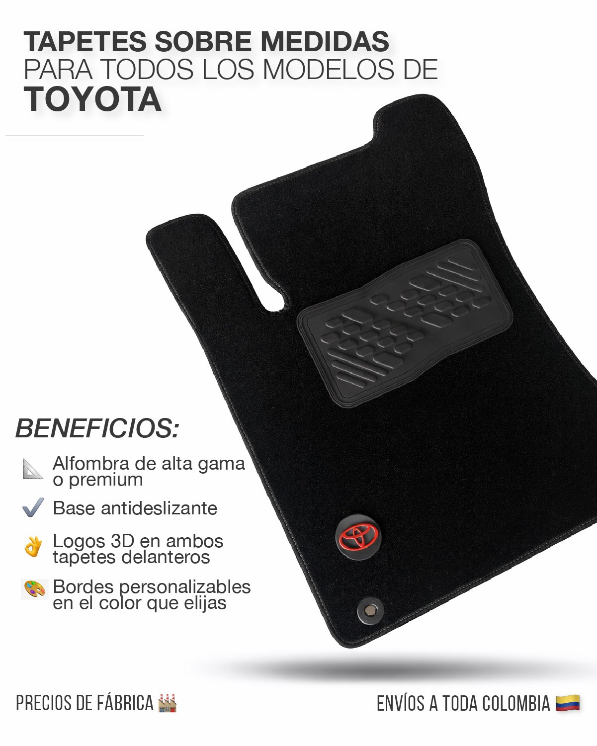 Fabricamos tapetes sobre medidas para todos los modelos de carros Toyota