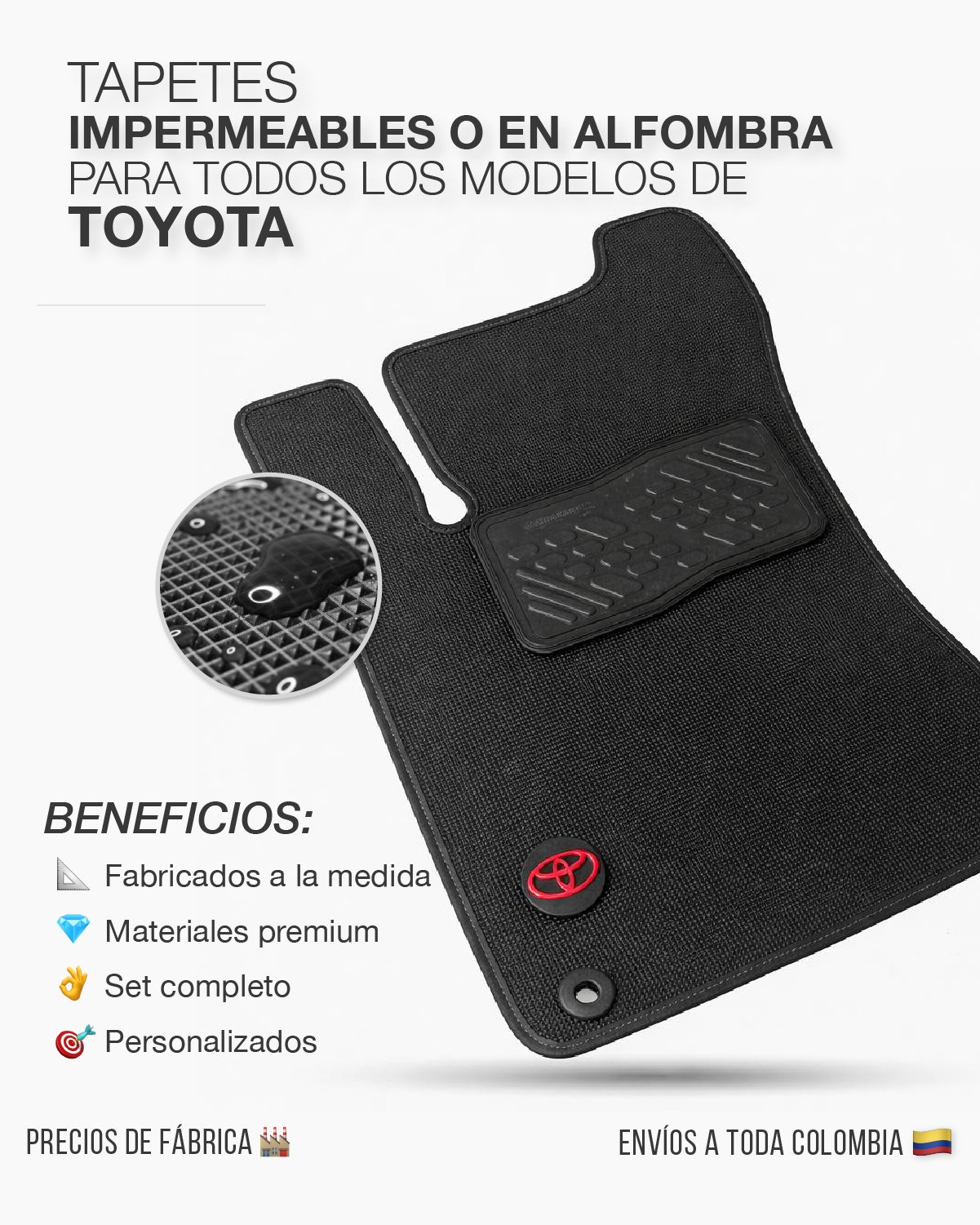 Fabricamos tapetes sobre medidas para todos los modelos de carros Toyota